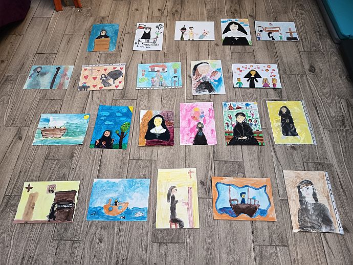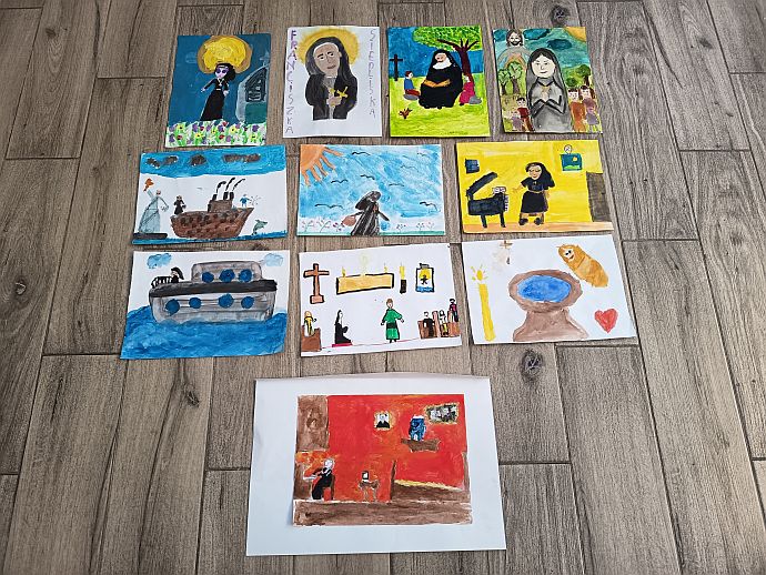 Jak co roku w listopadzie w naszych Świetlicach przeprowadzany jest konkurs plastyczny, gdzie dzieci zaangażowane w ten projekt mogą narysować, naszkicować lub namalować patronkę naszej szkoły Bł. Franciszkę Siedliską. Rok temu był szkic, więc tym razem chcieliśmy dodać więcej kolorów i ciepła w naszym konkursie, dlatego praca wykonana musiała zostać farbami akwarelowymi.