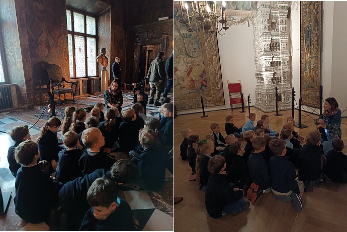 28 października klasa 1a wybrała się na wyjątkową wycieczkę do Zamku Królewskiego na Wawelu. Uczniowie wzięli udział w lekcji muzealnej „Tańce i zabawy na wawelskim dworze”, która przeniosła ich w czasy renesansu.