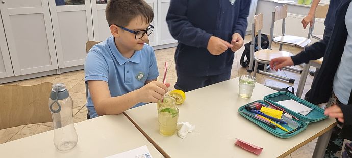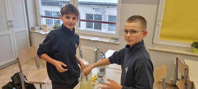 Zajęcia były pełne energii, wiedzy i wspólnego działania. Uczniowie nie tylko dowiedzieli się, jak dbać o swoje nawodnienie w sposób zdrowy i świadomy, lecz także przekonali się, że najlepsze izotoniki można zrobić samodzielnie — szybko, smacznie i bez zbędnych dodatków. To była lekcja, która na pewno długo zostanie w ich pamięci!