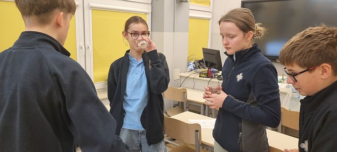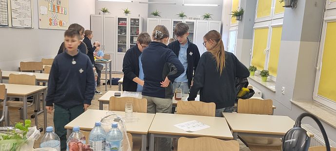 Najwięcej radości przyniosła część praktyczna. Uczniowie, korzystając z naturalnych składników, przygotowali własne, zdrowe napoje izotoniczne. Wykorzystywali m.in. wodę, odrobinę soli, miód oraz świeże owoce. Każda grupa stworzyła inny wariant smaku, a późniejsza degustacja okazała się prawdziwą eksplozją kreatywności i uśmiechów.