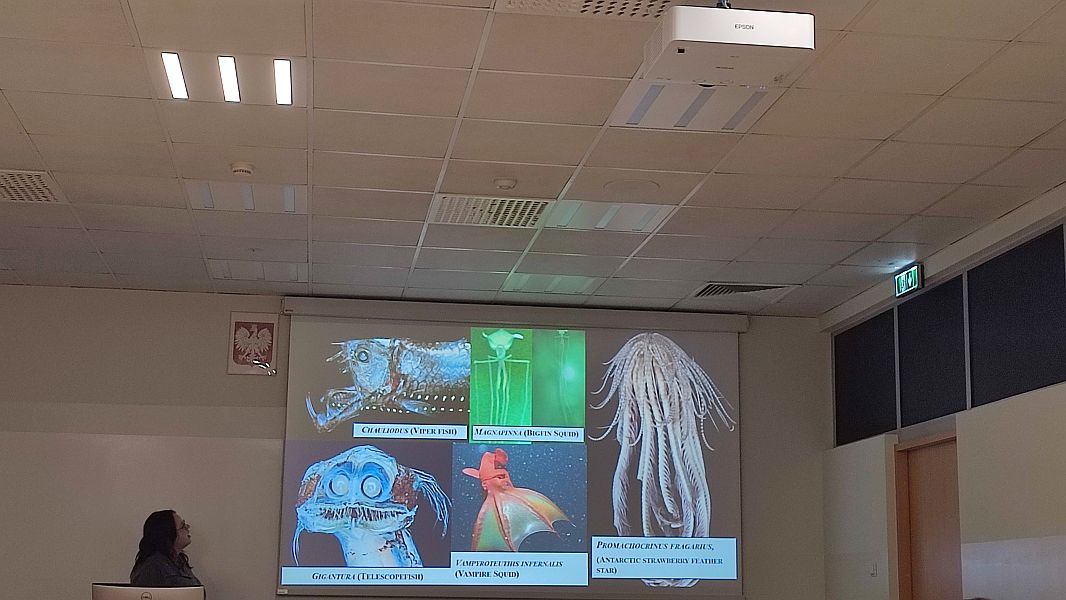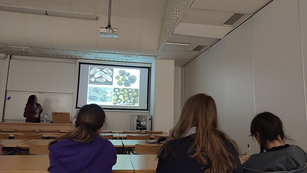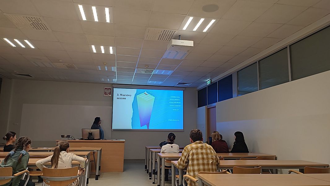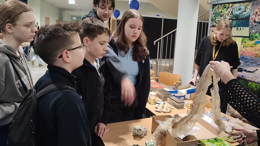 Następnie wzięliśmy udział w wykładzie pt.:” Riki-tiki-tak, daj mi jakiś znak: czyli o strategiach rozrodczych małży słodkowodnych.” Pani dr Anna Maria Łabęcka opowiedziała słuchaczom dlaczego małże są niezbędne w ekosystemach. Dowiedzieliśmy się, że Wodociągi Skawińskie stosują małże z gatunku skójka zaostrzona (Unio tumidus) jako naturalny, niezwykle czuły system biomonitoringu wody pitnej pobieranej z rzeki Skawinka oraz ujęć głębinowych. Mięczaki te, wyposażone w czujniki, monitorują jakość wody on-line, a w przypadku wykrycia zanieczyszczeń zamykają muszle, uruchamiając alarm, co zwiększa bezpieczeństwo mieszkańców.