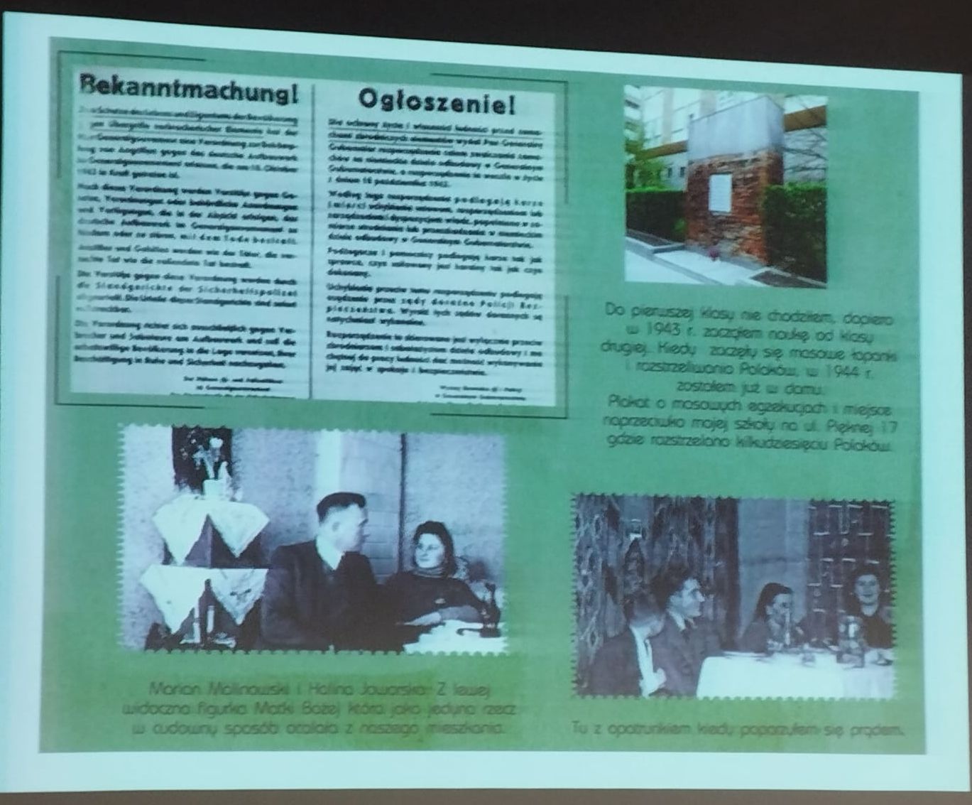 Pan Mieczysław w poruszający sposób przedstawił realia codziennego życia w okupowanej stolicy, trudności, z jakimi musieli mierzyć się mieszkańcy miasta oraz ogromny strach, który towarzyszył im każdego dnia. Podzielił się także osobistymi wspomnieniami, ukazując, jak ważne były odwaga, solidarność i nadzieja w tamtych trudnych czasach. Swoją opowieść wzbogacił licznymi fotografiami, które pozwoliły uczniom w wirtualny sposób przenieść się do tamtych dni.
